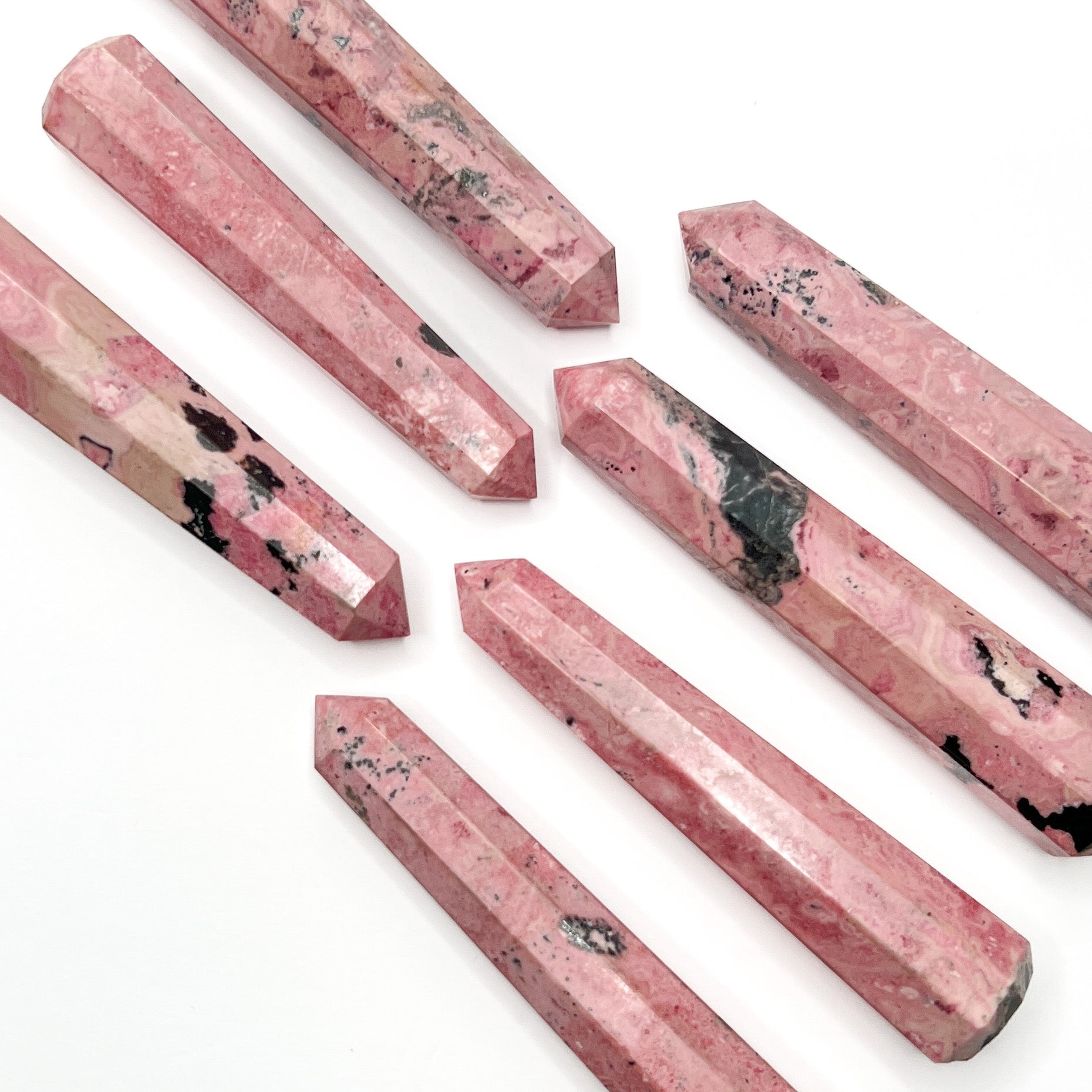 These bubble gum pink Peruvian Rhodonite Six Sided towers are incredible, They will be a beautiful addition to your collection!
