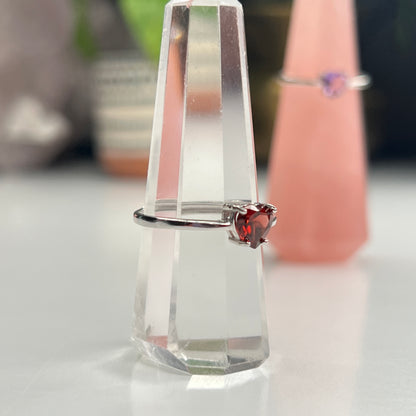 S925 Adjustable Faceted Heart Rings
